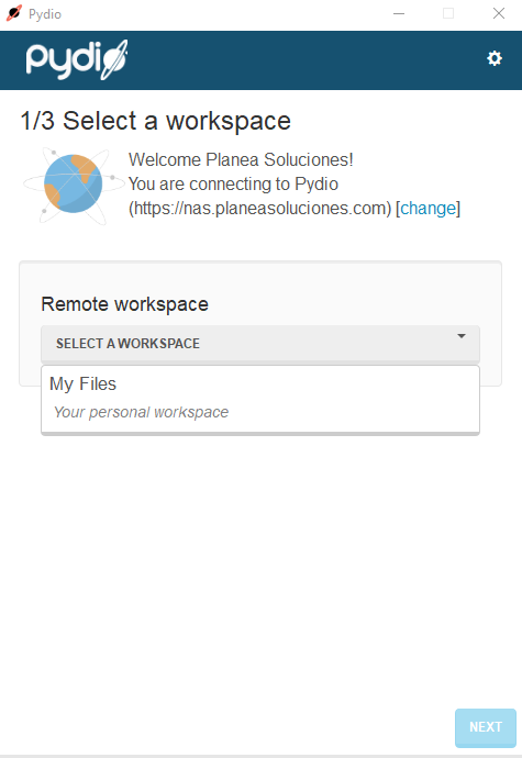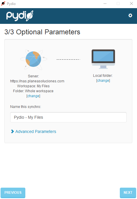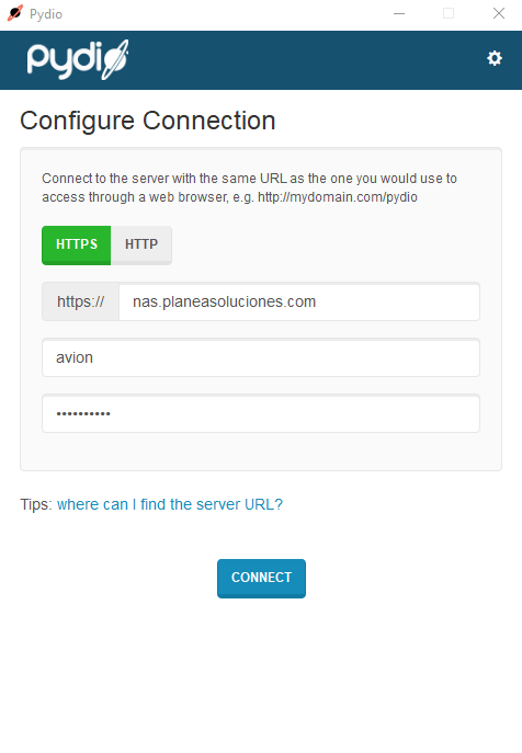 Una vez instalada, abrimos la aplicación Pydio y configuraremos nuestra cuenta para que se puedan ejecutar las sincronizaciones.